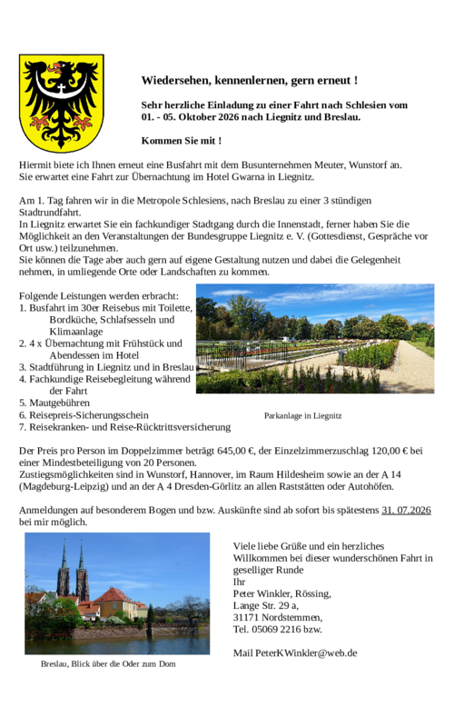 Fahrt zum Erntedankfest nach Liegnitz